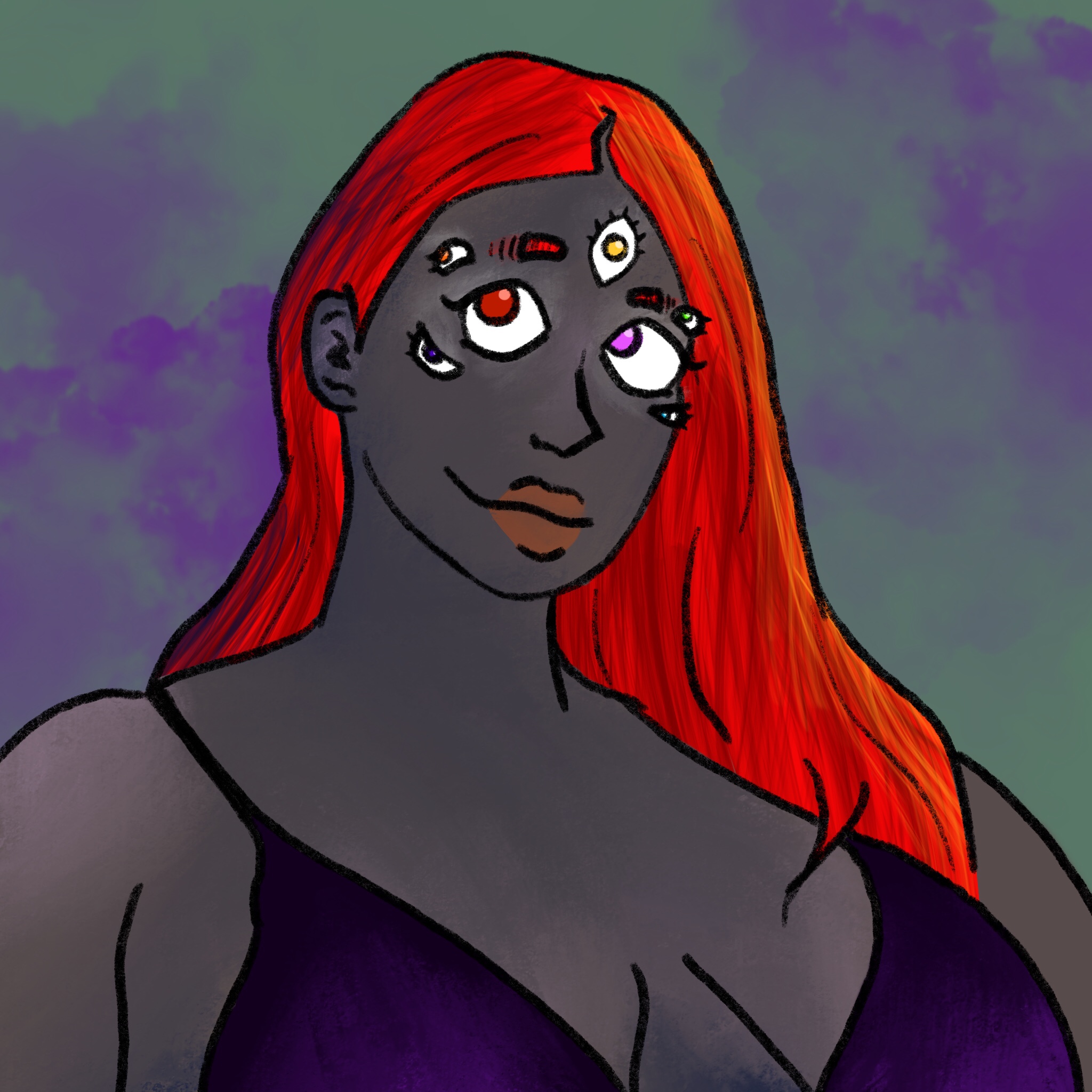 Miasma, seven-eyed, fat, gorgeous. Will refer to you as ‘sweetheart’. She can see colours like a shrimp. It’s not very useful.